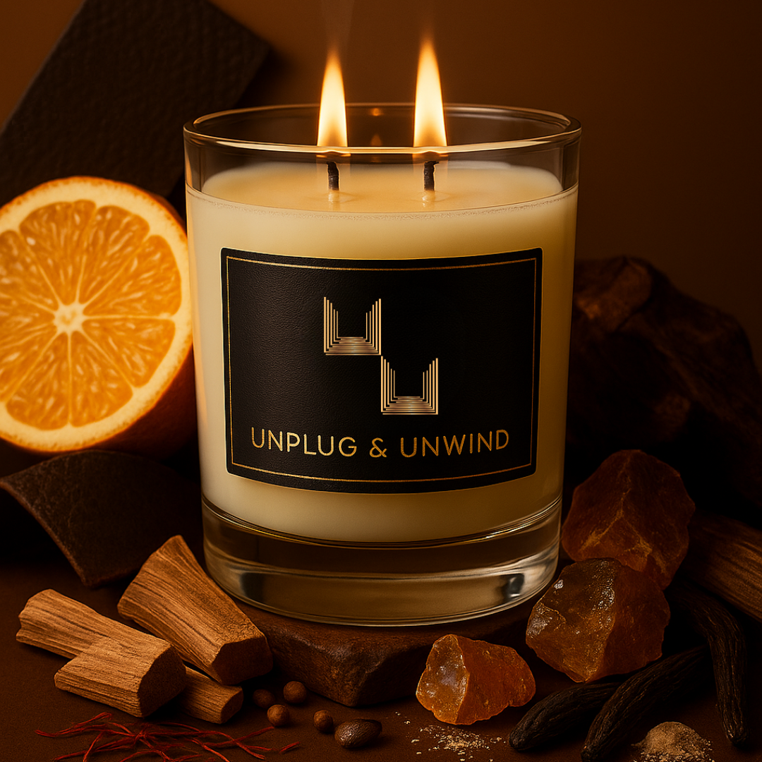 Crafted for a bold, masculine presence, this candle opens with a clean, crisp burst of ozone and citrus, instantly energizing your space. The heart is dominated by rich sandalwood, smooth tonka bean, rugged leather, earthy patchouli, and warm benzoin—creating a complex, grounded scent with a touch of warmth and spice.